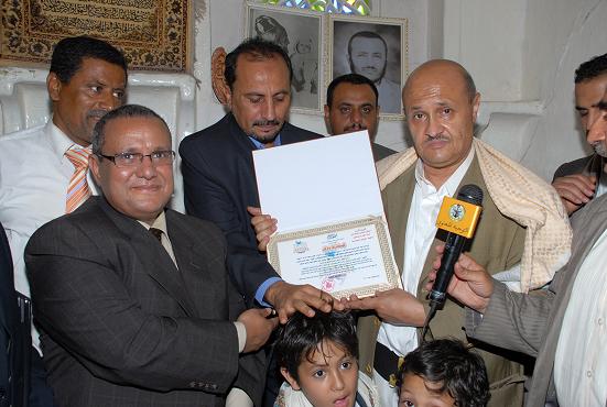 في احتفائية متواضعة احتضنها منزله الواقع ببستان السلطان بأمانة العاصمة، كرم الملتقى الوطني لأبناء الثوار والمناضلين والشهداء ( مجد) اليوم أبو الأحرار ( محمد محمود الزبيري)، في تكريم هو الثاني منذ أكثر من 30 عاما، احتفاء بالذكرى الـ45 لاستشهاده، وشهد حفل التكريم كلا من السفير المصري في صنعاء (محمد مرسي عوض) والسفير الفلسطيني (بسام عبدالله الآغا).